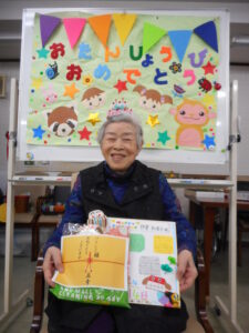 誕生日プレゼントとスタッフからのメッセージをとても喜んで頂いております。